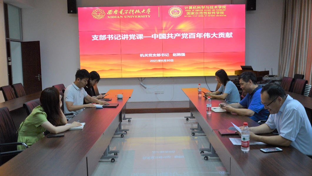 (通讯员 陈龙)为庆祝中国共产党成立100周年和建校90周年,学习习近平总书记关于“党史学习教育动员大会”的重要讲话精神,贯彻落实教育部和公司党委党史学习教育实施方案,6月30日下午,tyc33455cc机关党支部在北校区主楼二区319会议室召开了学党史系列专题活动,机关支部书记赵韩强讲了题为“中国共产党百年伟大贡献”党课,共同观看重大党史题材电影《百团大战》,引导党员从红色影片中汲取力量,践行共产党员的初心和使命。