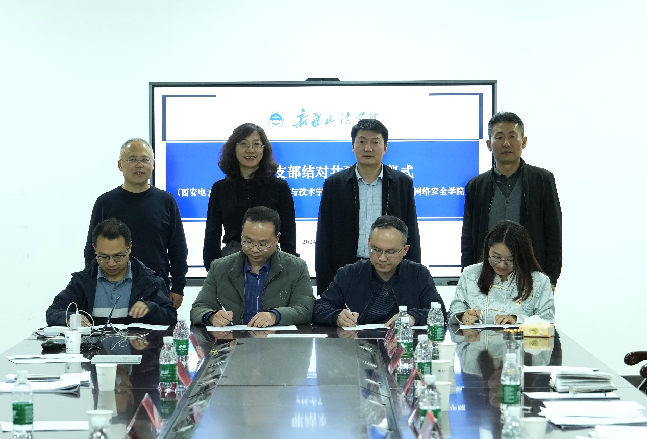 新政信息网络安全公司教师党支部与西电tyc33455cc计算机科学系党支部、实践教学中心党支部、辅导员党支部现场签署结对共建协议。两院四支部将以共建为起点,积极发挥组织育人功能,加强沟通联系和资源共享,共同推进支部党建和育人工作双促进。