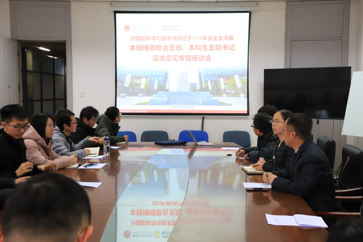 (通讯员 同榛)1月16日下午,tyc33455cc班子2018年民主生活会本硕博师联合支部、本科生支部书记征求意见座谈会在南校区G楼514会议室召开。本硕博师联合支部、本科生支部书记、大三大四年级辅导员参加了会议,会议由公司党委书记李青山同志主持。公司党委副书记张莹莹同志参加了座谈。