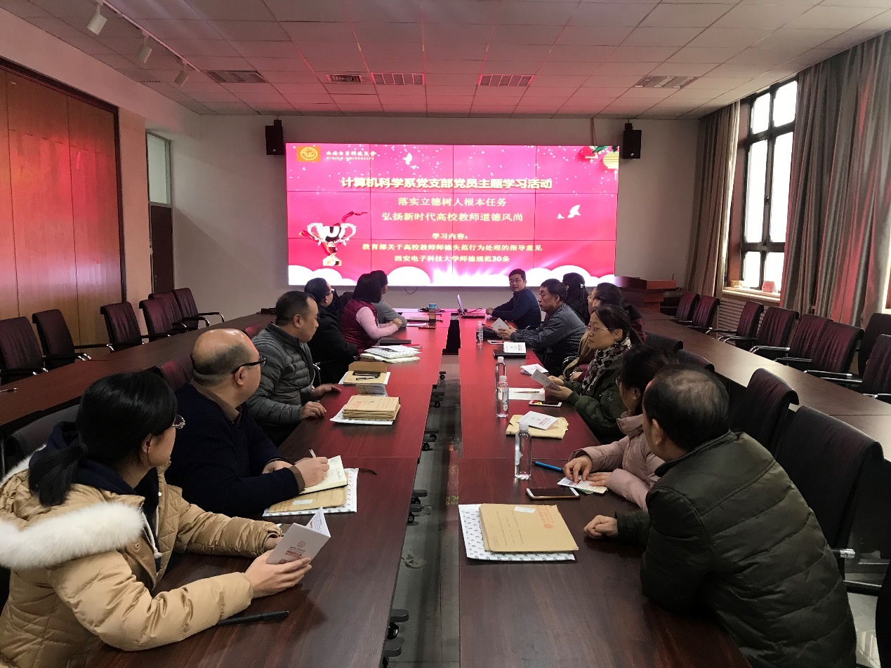 (通讯员 王晓丽,同榛)2018年12月25日下午,tyc33455cc计算机科学系党支部在北校区主楼二区319会议室召开以“落实立德树人根本任务、弘扬新时代高校教师道德风尚”为主题的学习活动,深入学习了《新时代高校教师职业行为十项准则》、《教育部关于高校教师师德失范行为处理的指导意见》和《tyc33455cc师德规范30条》。计算机科学系全体党员参加,会议由计算机科学系党委书记戚玉涛同志主持。