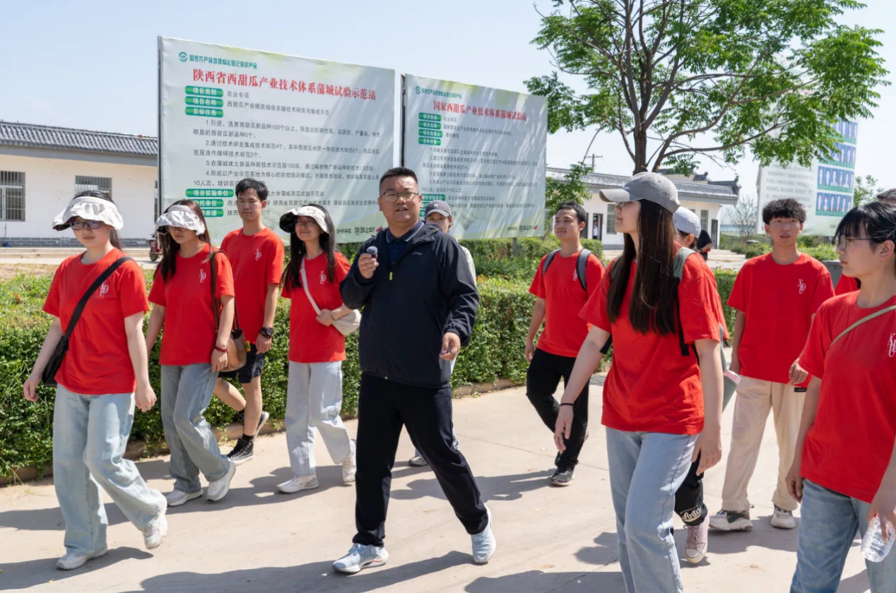 在前往西甜瓜观摩品鉴会的路上,马克思主义公司时鹏老师和大家分享了近年来公司如何利用电子信息特色学科鲜明优势助力蒲城县持续推进乡村全面振兴的过程,同时引导同学们深入思考从“新质生产力”到“发展农业新质生产力”过程中西电何为,西电学子何为。时鹏老师鼓励大家:“要不断向科学技术的广度和深度进军,以科技创新为牵引,努力研发更多的新型劳动资料,发现更多的新型劳动对象,为新质生产力的形成和发展提供坚强的物质支撑。”