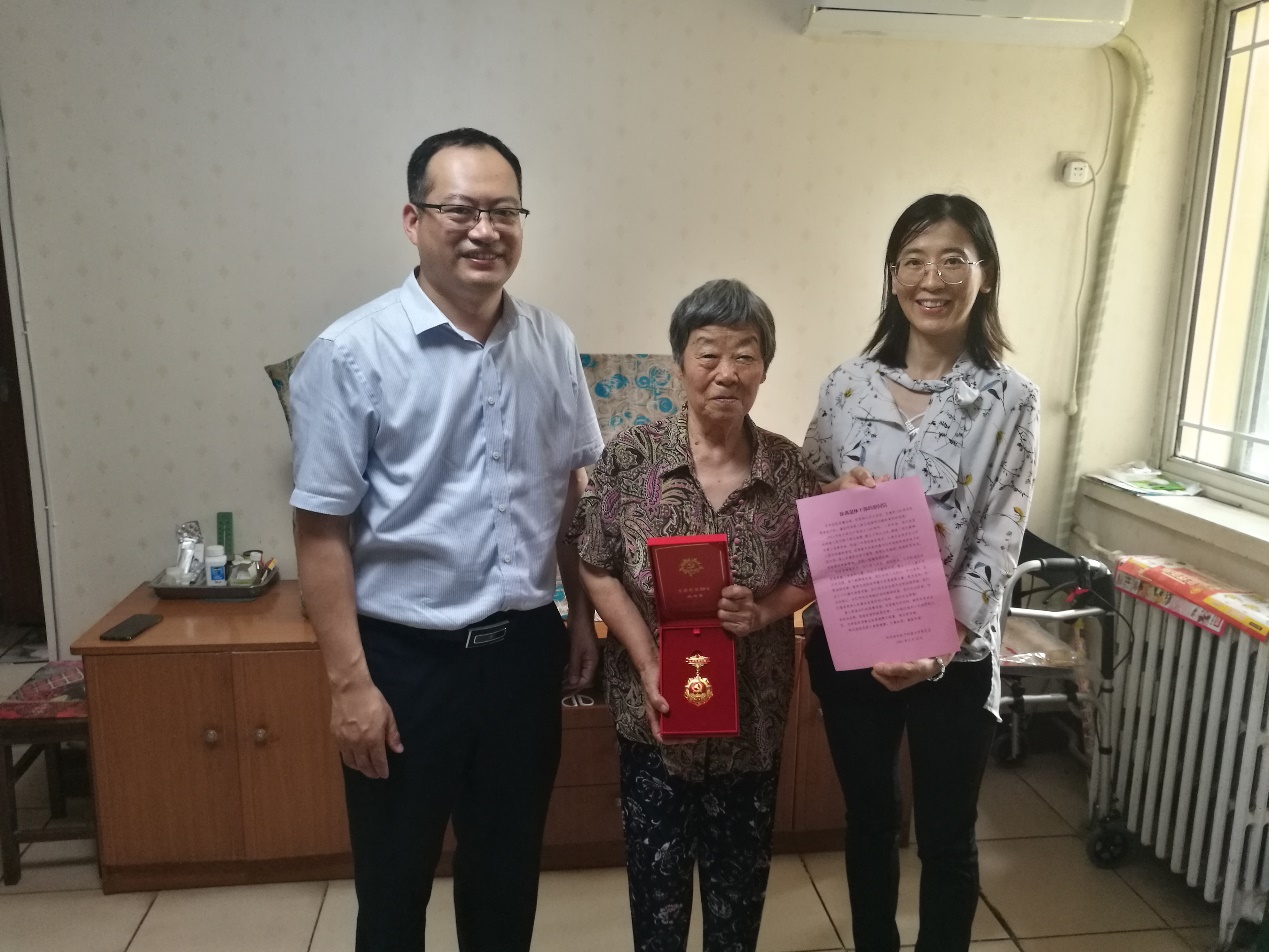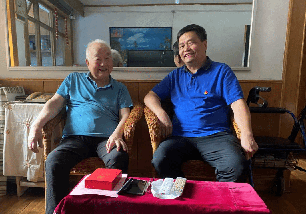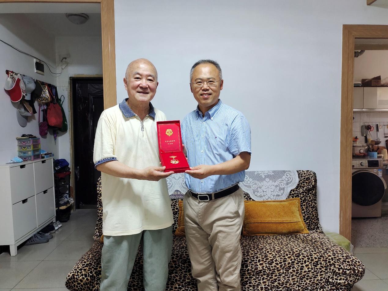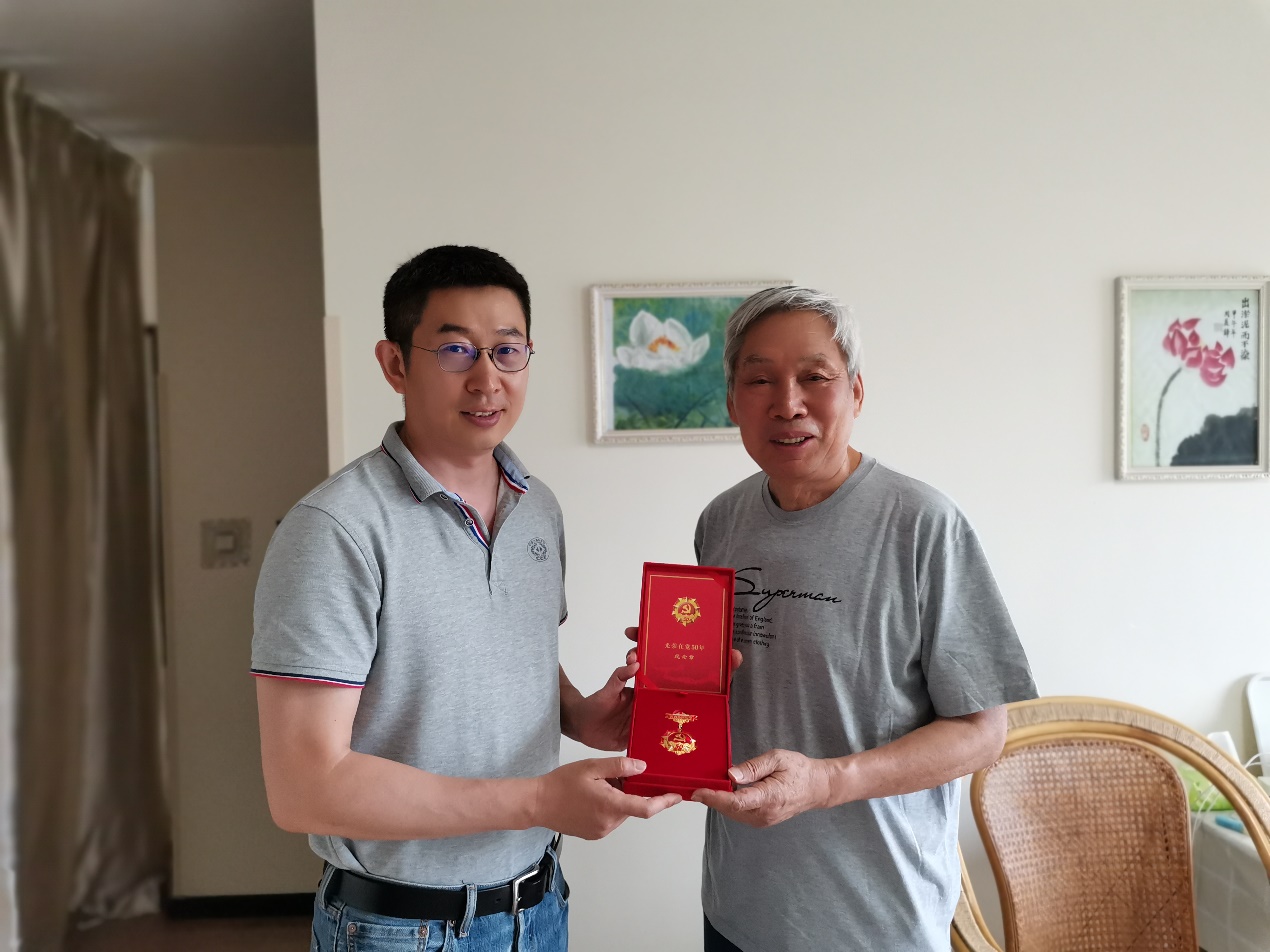 张卫东慰问于崇标老师并送上“光荣在党50年”纪念章