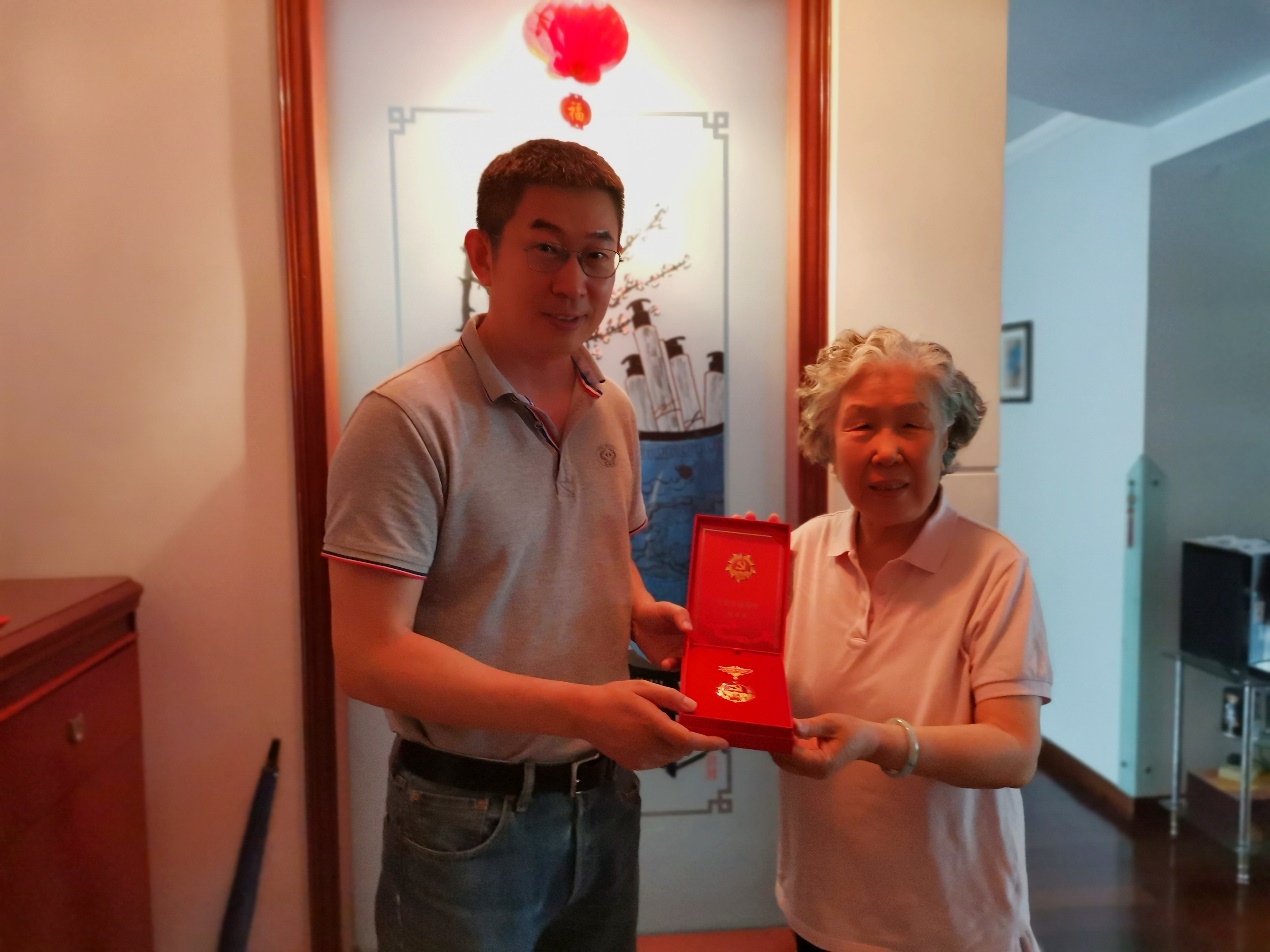 张卫东慰问上官仪老师并送上“光荣在党50年”纪念章