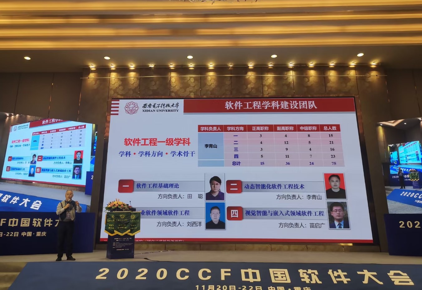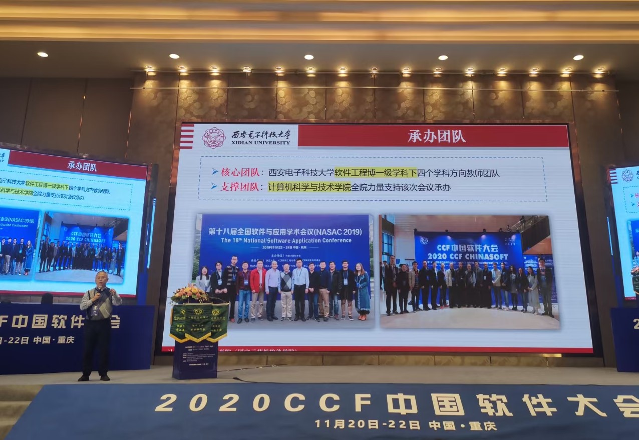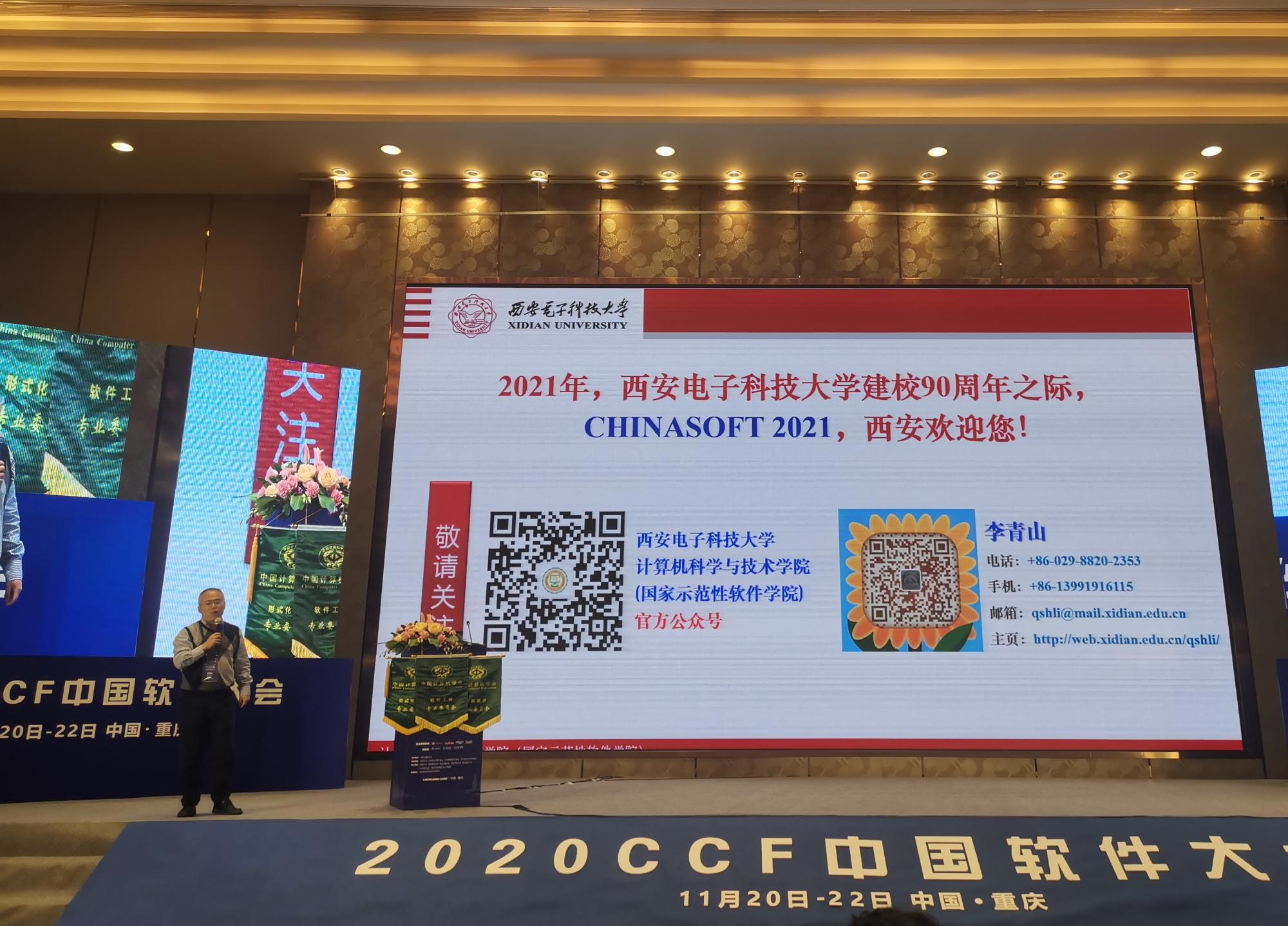(通讯员 徐悦甡)2020年11月20日至11月22日,CCF中国软件大会(CHINASOFT)在重庆召开,会议由中国计算机学会(CCF)主办,CCF系统软件专业委员会、CCF软件工程专业委员会、CCF形式化方法专业委员会、重庆大学大数据与软件公司承办。tyc33455cc软件工程学科四个学科方向的骨干教师20余人及部分员工,在学科负责人李青山教授、学科方向负责人田聪教授、刘西洋教授、苗启广教授以及学科秘书长宋胜利教授的带领下参加了会议。学科参会教师和员工有多篇论文被录用并被推荐到《软件学报》等知名期刊,参会教师和员工还在大会举办的教学与学科竞赛中获得佳绩。特别地,公司获批了明年CCF中国软件大会的承办权,李青山参加了下届会议的承办交接仪式。