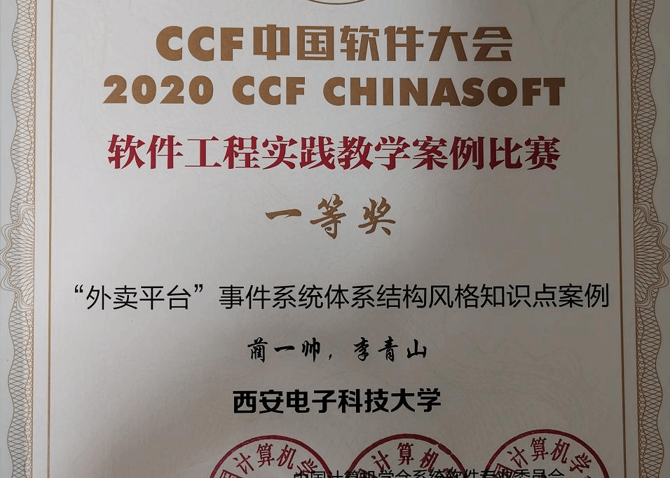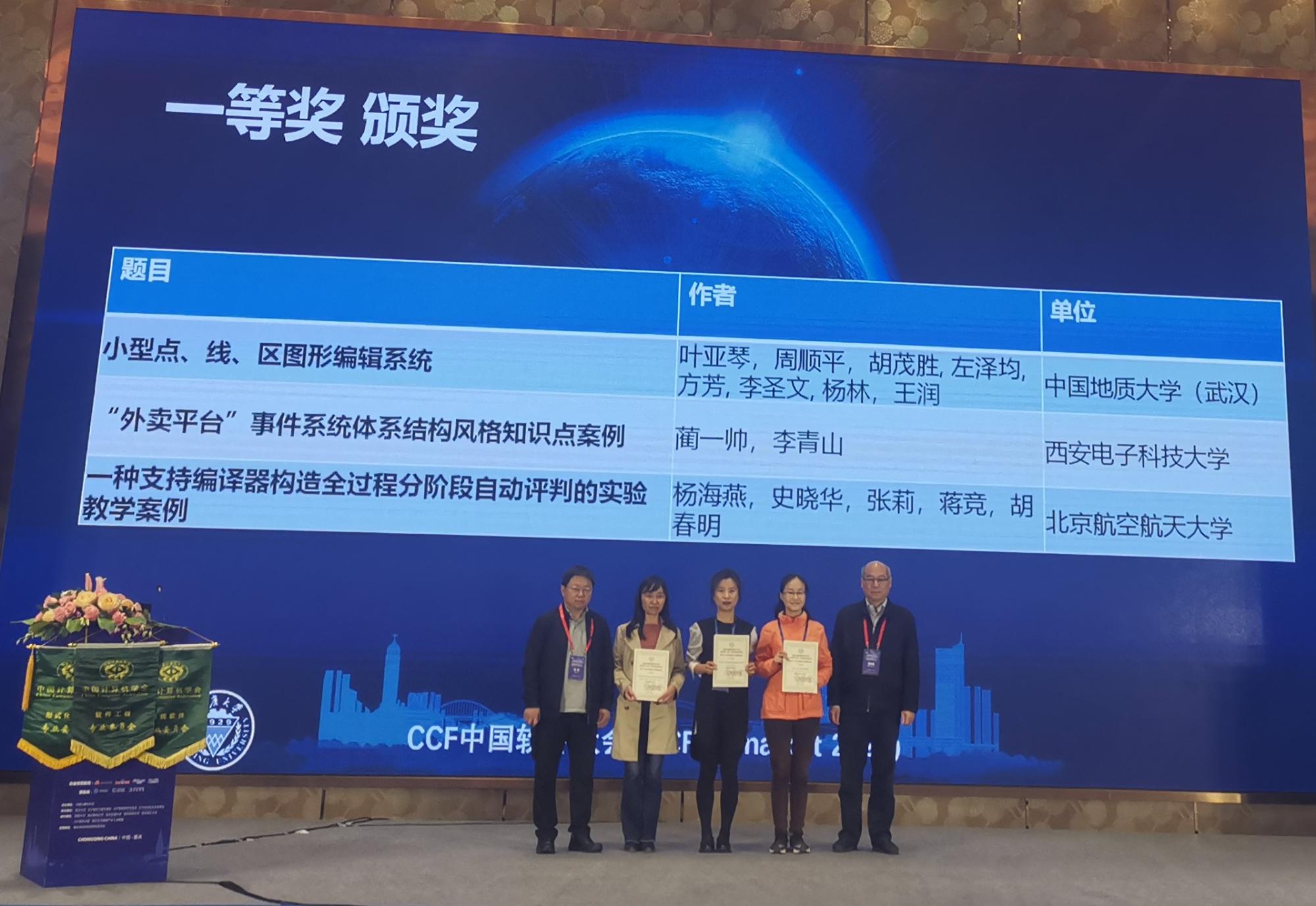 同时,在大会举办的一系列比赛与竞赛中,公司教师与员工也取得了佳绩。蔺一帅博士负责的题为《“外卖平台”事件系统体系结构风格知识点案例》获得大会软件工程实践教学案例比赛一等奖,由李贺老师指导的参赛队伍获得第三届全国高校绿色计算创新大赛一等奖。