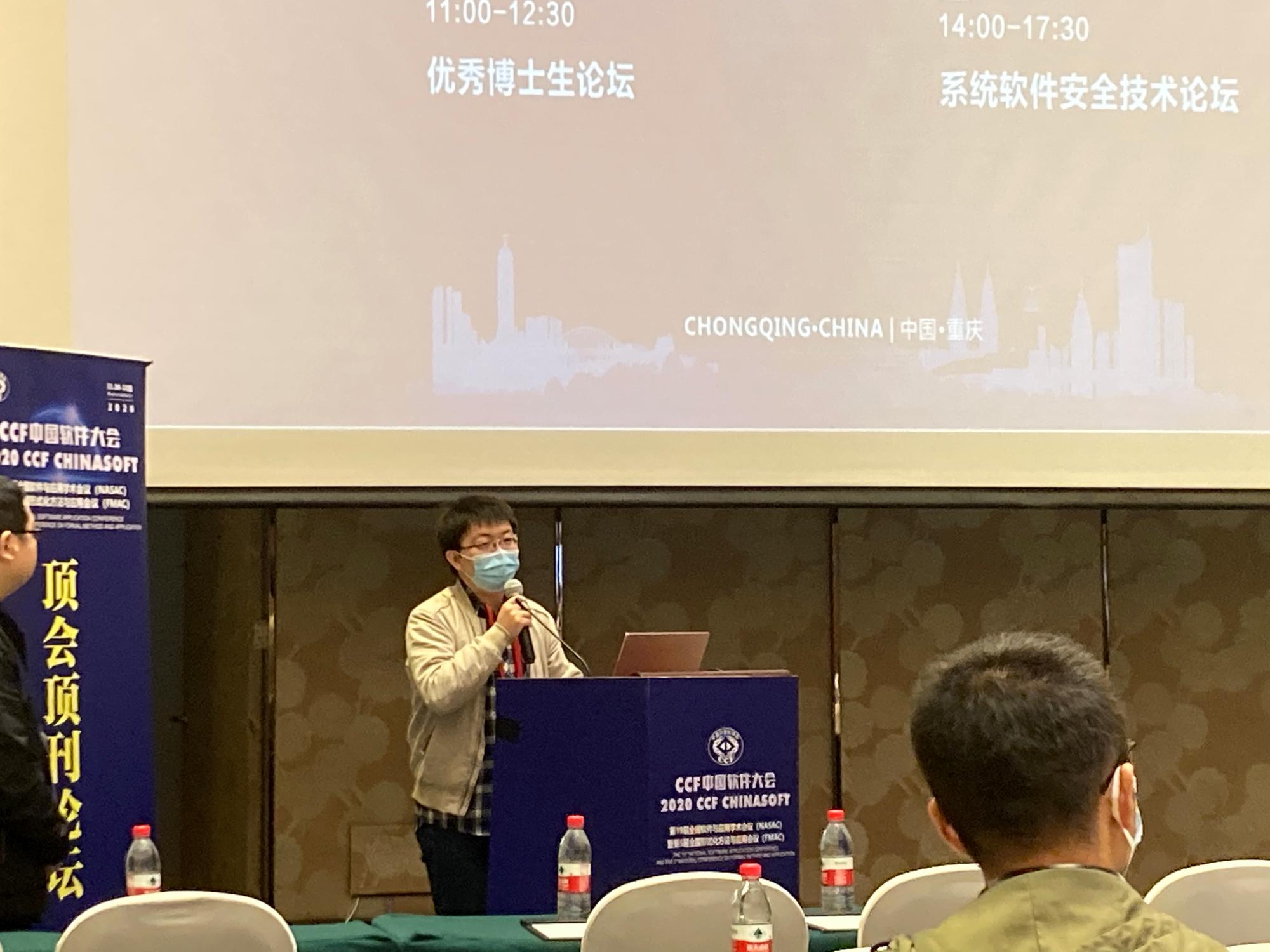 学科参会教师与员工代表在大会上还汇报了多篇被录用的大会论文,被录用的论文同时会被推荐到《软件学报》等知名期刊发表。其中,包括王小兵副教授的论文《基于MSVL的智能合约形式化验证》,张南副教授的论文《芯片开发的功能验证形式化方法与应用》,张捷博士的论文《基于污染变量关系图的Android应用污点分析工具》以及王璐博士的论文《SAFER:基于事件关系保障识别质量的自适应分析方法》等。