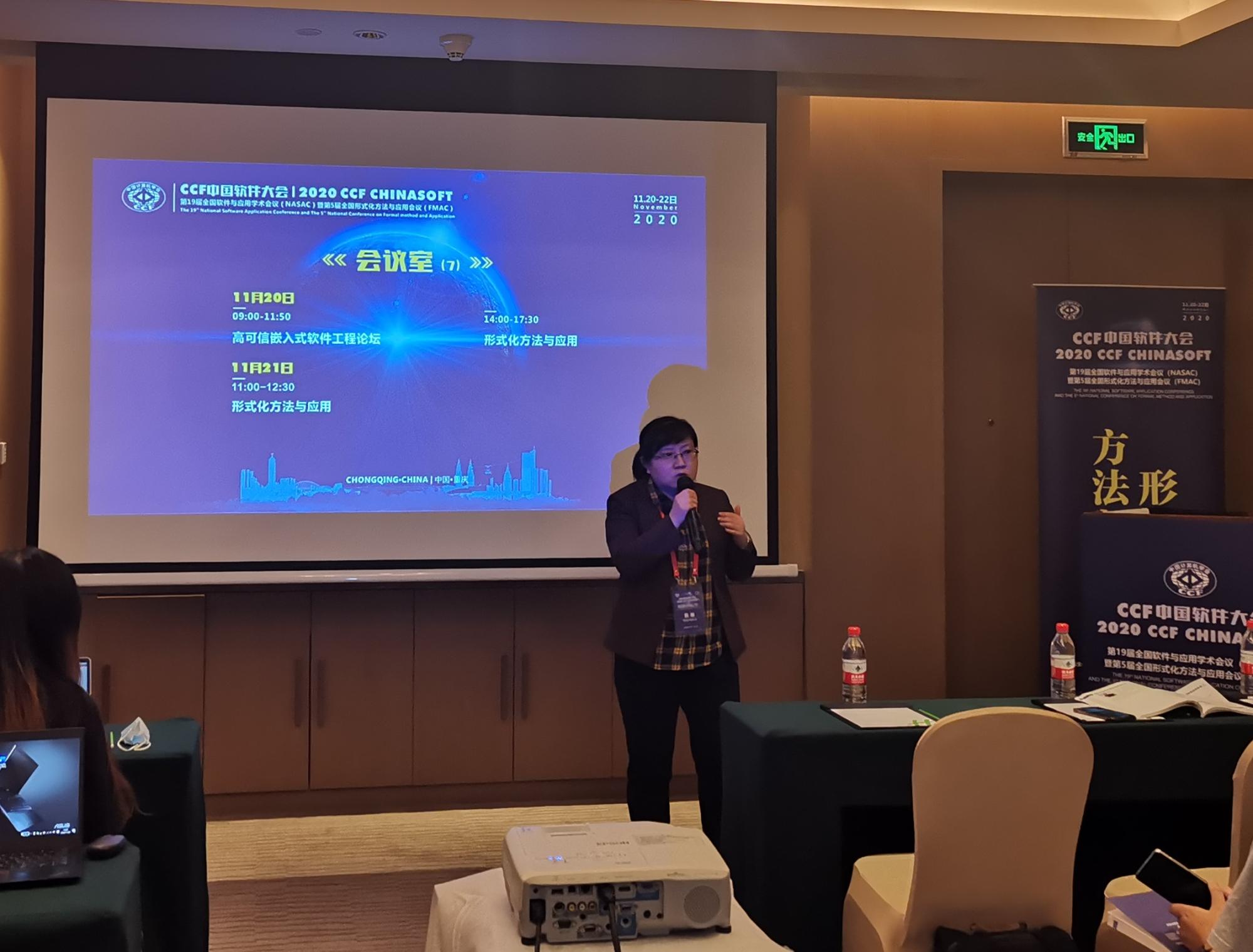西电软工学科参会教师主持了若干个大会论坛,其中田聪教授主持了“形式化方法与应用论坛”,论坛上来自包括清华大学、西北工业大学、中南大学、tyc33455cc、首都师范大学等在内的22篇论文的作者代表做了论文报告。于斌博士主持了“顶会顶刊论坛”,论坛包括了国内最近一年发表在软件工程和形式化等领域的顶级国际会议与期刊上的代表性论文12篇,发表出处包括CAV 2020、LICS 2020、ICSE 2020、ASE2020、IJCAI 2020以及TOSEM等。