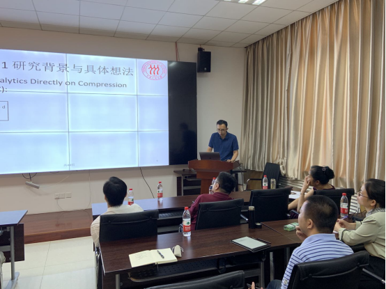 邹磊教授作为了题为《(子)图匹配:算法、系统和应用》的报告。他之处(子)图匹配在计算机领域的图像检索、化学分子式检索、知识图谱查询和社交网络分析中都有很多应用。他首先回顾(子)图匹配的几种经典算法思路以及最新的优化策略;作为目前图数据库查询语言(例如SPARQL和Cypher等)的基础算子,重点讨论从图数据库查询执行的角度来探讨(子)图匹配算法在设计和系统优化方面的一些研究点,以及团队在这方面的一些最新工作。报告最后,现场师生积极向邹磊教授请教学术问题,邹教授一一解答。