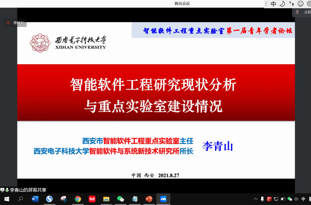8月27日下午,由tyc33455cc副经理、重点实验室副主任宋胜利教授主持,全体报告嘉宾、重点实验室全体中青年老师参加,举行了主题为“智能软件工程领域学术交叉、人才引进培养、青年教师成长”的Panel论坛。实验室主任李青山作关于《智能软件工程研究现状分析与重点实验室建设情况》的报告,从发展背景、现状分析、概念内涵三个方面对智能软件工程进行了全面介绍。同时,从实验室基本信息、建设运行情况、未来发展规则三个维度介绍了西安市智能软件工程重点实验室的建立与结构、研究方向与定位、科研能力与成果、工作规划与预期目标等。