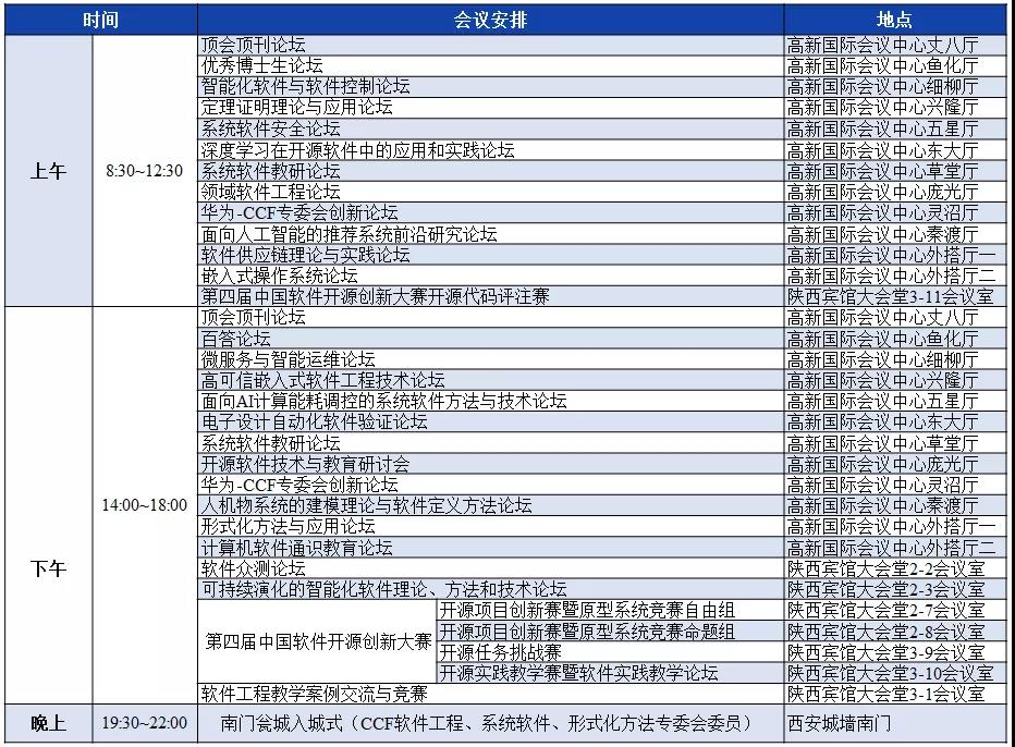 大会由中国计算机学会(CCF)主办,CCF软件工程专委会、系统软件专委会、形式化方法专委会、tyc33455cc承办,tyc33455cc具体落实,西安市智能软件工程重点实验室负责实施,由西安交通大学、西北工业大学、西北农林科技大学、西安理工大学、中国航空工业集团公司西安航空计算技术研究所、陕西省计算机学会协办,得到西安高新区管委会的大力支持,西安高新区软件新城管办具体执行。大会由华为技术有限公司、西安前沿动力软件开发有限责任公司、汇丰科技、百度公司作为白金赞助商,由北京轩宇信息技术有限公司、西安葡萄城软件有限公司、上海工业控制安全创新科技有限公司、西安深信科创信息技术有限公司作为赞助商。本次大会的主题为“基础软件:自主、安全与创新”。