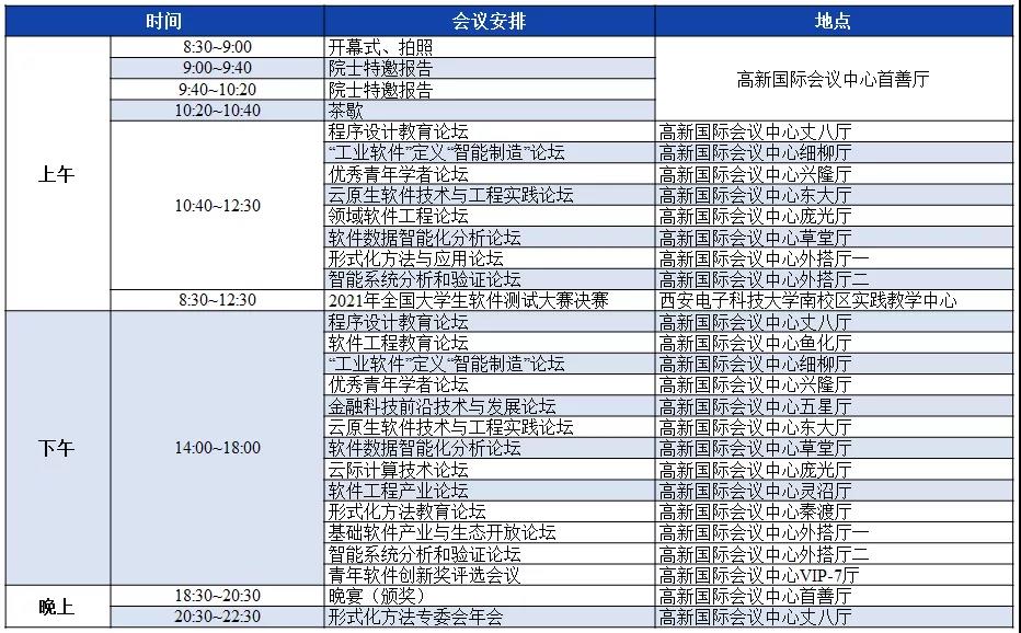 2021CCF中国软件大会将组织特邀报告、院士高峰论坛、青年学者论坛、论文专刊论坛、顶会顶刊论坛、学术论坛、工业论坛、教育论坛、学科竞赛答辩和软件研究成果展示等30余个不同类型的活动。大会将邀请10余位软件及相关领域中国科公司院士与中国工程院院士,为大会带来特邀报告并参加院士高峰论坛等活动。目前已邀请参会的两院院士包括中国科公司院士林惠民,中国科公司院士陶文铨,中国科公司院士梅宏,中国科公司院士吕建,中国科公司院士李应红,中国工程院院士廖湘科,中国科公司院士杨孟飞,中国科公司院士管晓宏,中国科公司院士王怀民,中国科公司院士冯登国,中国工程院院士孙凝晖等。