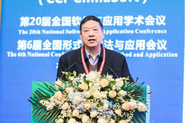 本届大会轮值专委会CCF形式化方法专委会荣誉主任、大会共同荣誉主席、中国科公司院士林惠民致辞。林惠民院士再次欢迎各位代表的参会,并对tyc33455cc承办团队为大会筹办与组织付出的努力表示特别感谢,也对协办单位、支持单位与赞助单位表示感谢。同时,林惠民院士通过回顾国内软件技术发展的历程,阐释了当前软件相关领域面临的挑战,并强调了自主创新与基础研究的重要性。