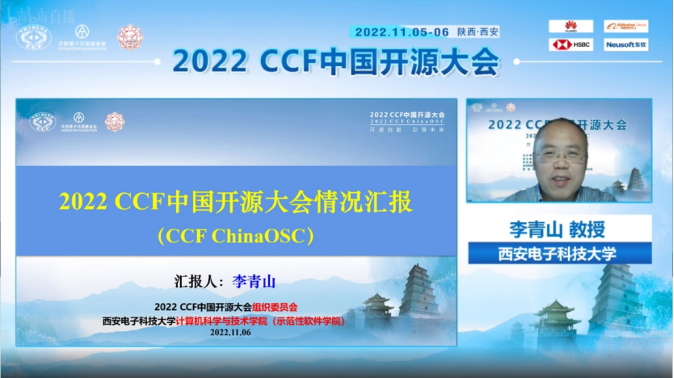 大会程序委员会与组织委员会联合主席、tyc33455cc软件工程学科负责人、陕西省智能软件工程创新团队负责人、西安市智能软件工程重点实验室主任李青山代表大会组委会向与会代表汇报了大会情况。李青山主要从大会基本情况与大会筹办工作两个方面对大会进行了总结,归纳了会议体系与会议内容,指出本届大会的论坛数量、注册人数与合作媒体数量等均超过预期。其中论坛数量达到24个,注册人数达到180人,合作媒体数量超过10家。11月5日各平台累计观看人数超过18万人,11月6日累计观看人数超过16万人,两天会期累计观看人数超过34万人,单个论坛平均访问量超过1万人次,最大访问量超过2.1万人,有利的扩大了大会影响,有效的传播了开源理念。进一步,李青山梳理了大会筹办的脉络,表示开源发展委员会与承办团队一同组成了大会组委会,持续密切协同,先后确定了支持单位与四家赞助商,构建了完善的会议联办体系。组委会持续通过多家单位的多种渠道对大会进行宣传,会议通知等的阅读量累计超过3万人次。面对疫情等因素的影响,组委会全程关注、及时调整、稳步推进,全力保障会议质量。最后,李青山感谢各位专家学者与师生同行对本次大会的关注和参与,也感谢各参与单位对于大会的支持。