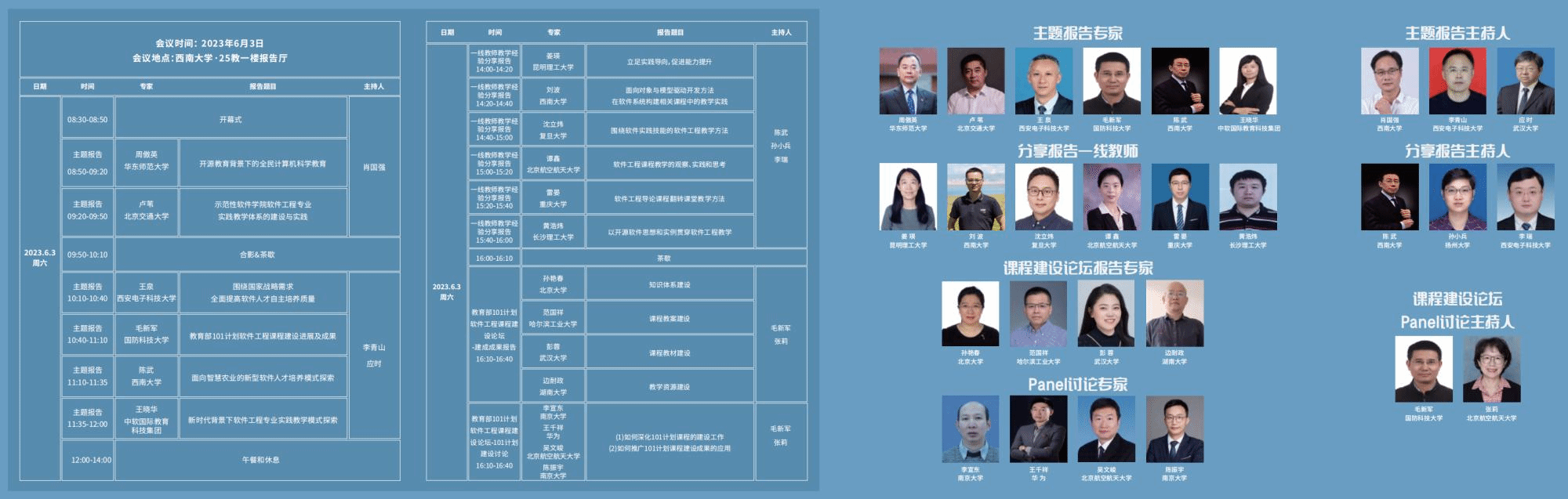 本次研讨会内容包括主旨报告、特邀报告、一线教师教学经验分享以及教育部101计划软件工程课程建设论坛四部分。主旨报告嘉宾是华东师范大学副董事长周傲英教授、北京交通大学卢苇教授、tyc33455cc副董事长王泉教授。周傲英教授以“开源教育背景下的计算机科学教育”为主题,强调做好中国的开源教育,要树立更高的价值观,发展更好的技术,孕育更包容的文化,产生更有效的制度。卢苇教授在“示范性软件公司软件工程专业实践教学体系建设”报告中阐释了以边学习-边实践-再学习-再实践为主线构建课程实训、学期实训、企业实习的多层次螺旋式提升能力的实践教学体系以及应用成效。王泉教授以“围绕国家战略需求全面提高软件人才自主培养质量”为报告主题,分析了我国软件人才培养的现状和存在的问题,梳理了国家相关激励政策。从数字化转型和产教融合、科教融合的角度,给出了提高软件人才自主培养质量的思考和实践。