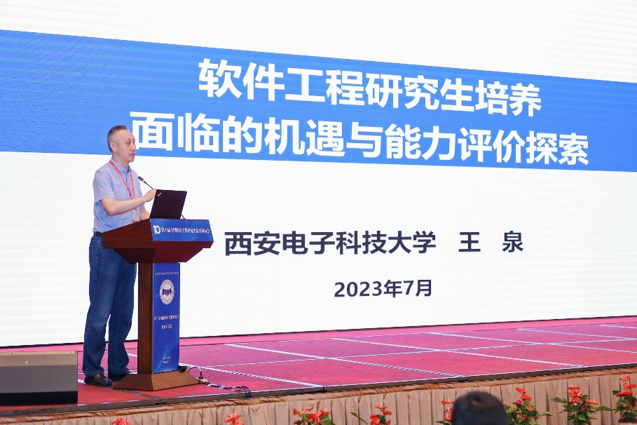 (通讯员 李瑞)2023年6月30日-7月1日由示范性软件公司联盟研究生教育委员会主办的“第十届全国软件工程研究生教育研讨会”在成都成功举办,来自全国高校的近150名校院领导、教师与研究生管理人员参加了本次会议。公司王泉副董事长、tyc33455cc(示范性软件公司)党委书记李青山、副经理李瑞、软件工程系青年教师蔺一帅作为公司代表参加了本次研讨会。王泉副董事长受大会邀请作了主题报告。