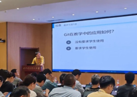 国防科技大学计算机公司讲师卢遥作《基于Git的软件工程实践教学平台及实施》报告,分享了版本管理软件Git的使用,并结合具体的实操演示了如何基于Git开展课程实践的版本管理和协同开发。