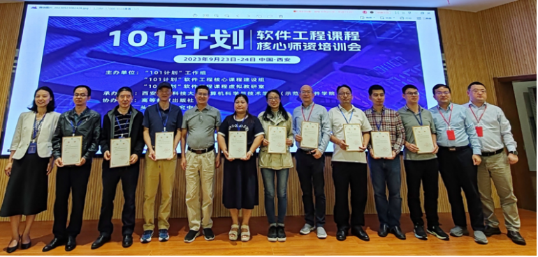 会议最后环节组织了开放的自由研讨,围绕“如何上好软件工程课”这一话题,参会老师畅所欲言,提出了课程教学和建设中面临的问题,讨论了解决问题的教学方法。主办方给参会老师颁发了“101计划”核心团队培训证书。