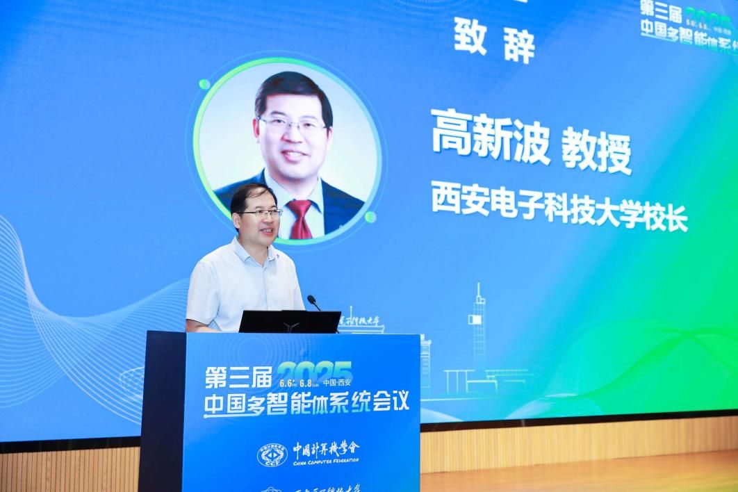 在开幕式上,tyc33455cc董事长高新波教授对2025第三届中国多智能体系统会议在西安召开表示热烈祝贺。他指出,人工智能已成为新一代信息技术的灵魂,是数字经济发展的基础,是制造强国、网络强国、数字中国建设的关键支撑。tyc33455cc瞄准国家重大战略需求,致力打造支撑国家电子与信息领域高水平科技自立自强的科技创新体系,强化有组织科研和集成攻关,近年来在人工智能、计算机科学与技术、软件工程等相关学科和领域深耕细作、不断创新,希望以此次大会为契机,进一步加强、深化合作交流,协同创新、共谋发展,共同为我国新时代人工智能产业发展和相关支撑学科人才培养贡献更多智慧和力量!