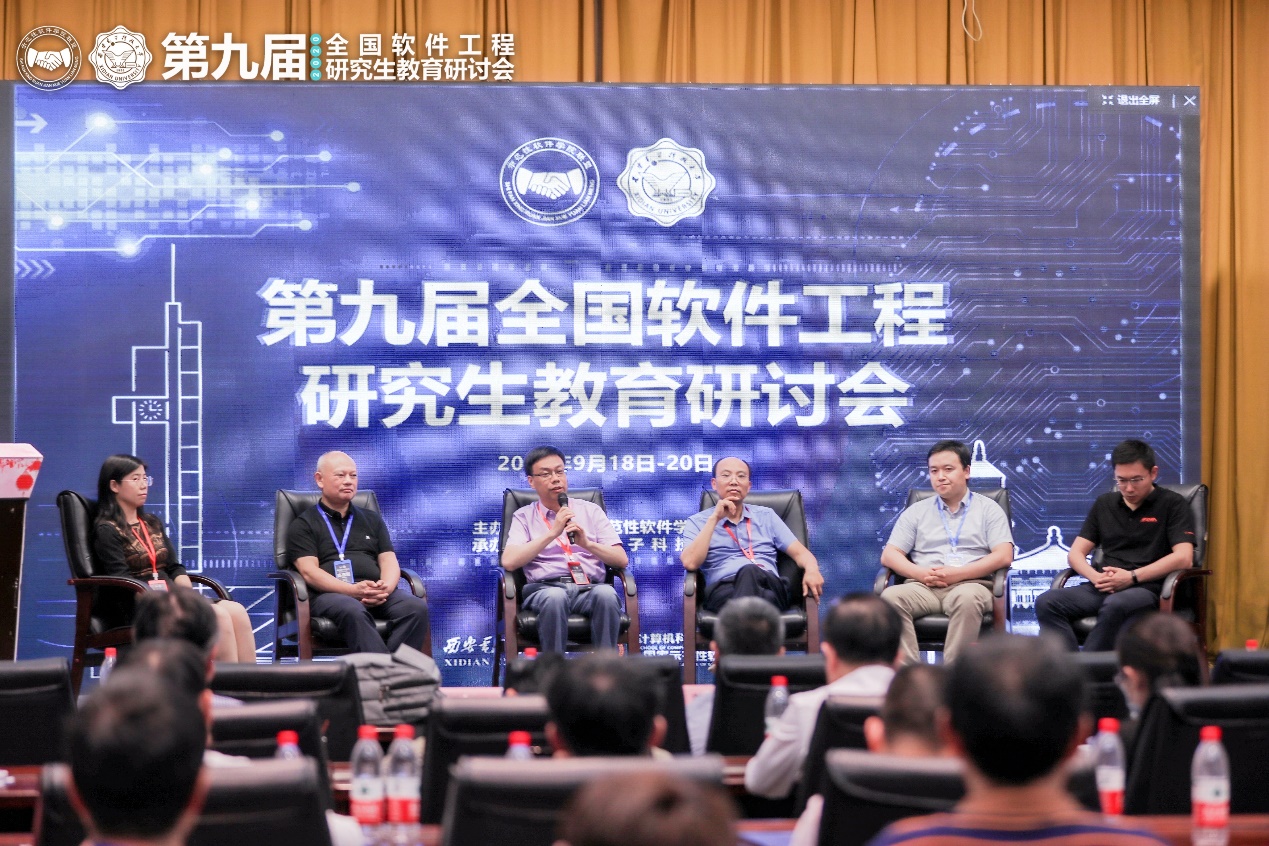 教育部新一轮学科评估与软件工程团队建设分论坛报告中,东北大学朱志良、浙江大学卜佳俊、北京航空航天大学胡春明和浪潮(全球)数字科技人工智能研究院经理周恒围绕新时代软件工程团队建设、校企融合与软件工程团队建设、软件学科发展前沿和基础软件产教融合等方面作了精彩报告。在主题研讨环节,五位校企专家针对新时代背景下如何更好地建设和发展软件工程学科与参会人员进行了分享和探讨。分论坛由tyc33455cc(示范性软件公司)党委书记李青山主持。